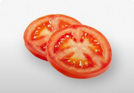 Two slices for an even tomato-to-bite ratio every time. Sliced fresh daily.